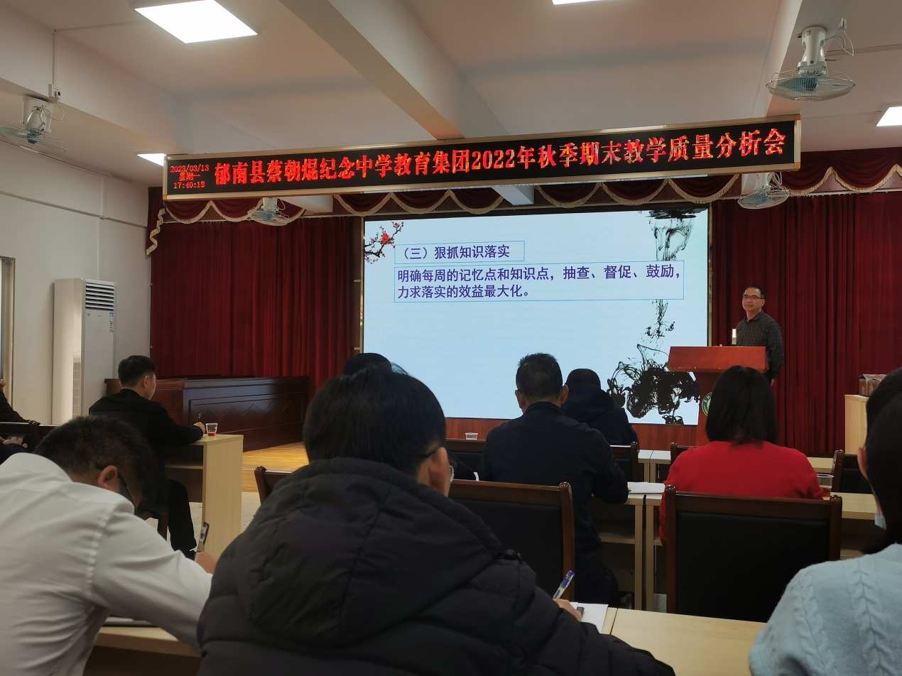 會(huì)上,集團(tuán)各成員學(xué)校主管教學(xué)的領(lǐng)導(dǎo)進(jìn)行了2022年秋教學(xué)質(zhì)量分析及提質(zhì)工作部署發(fā)言;受集團(tuán)總校校長(zhǎng)彭燕飛的委托教科處王國(guó)平主任作了“實(shí)抓·活管·創(chuàng)佳績(jī)”主題發(fā)言,在透析教學(xué)質(zhì)量提升的路徑時(shí),王主任提出要做到“學(xué)校重視,教師擔(dān)當(dāng),學(xué)生主動(dòng)”三管齊下,真正抓實(shí)抓好教與學(xué),從而提高學(xué)生的成績(jī);最后,郁南教師發(fā)展中心李超順老師作分析總結(jié),他向全體與會(huì)人員提出了具體工作建議:一是嚴(yán)抓備考紀(jì)律,二是明確奮斗目標(biāo),三是狠抓知識(shí)落實(shí),四是著力課堂效率,在學(xué)校、教師層面明確了教學(xué)重點(diǎn)和努力方向。