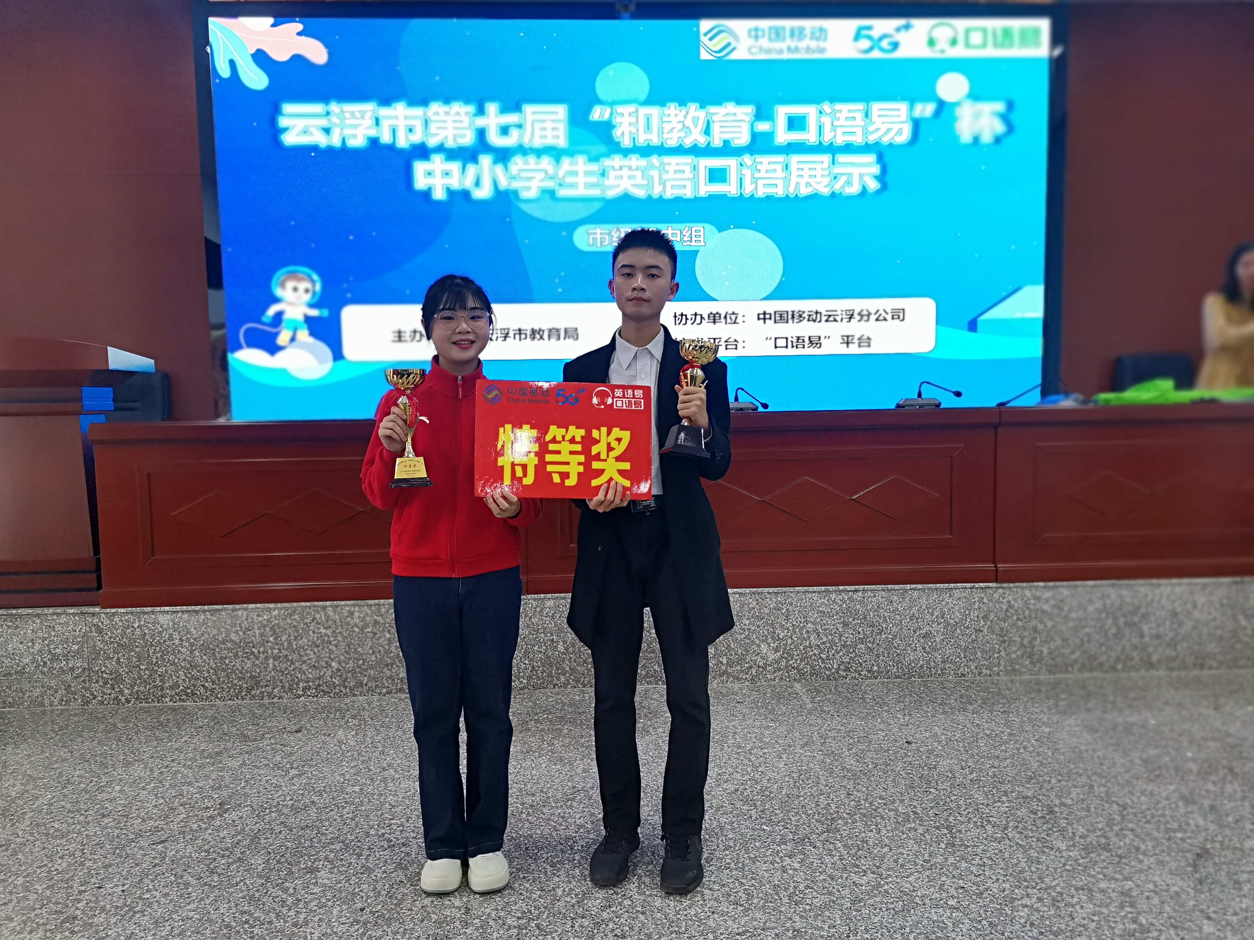3月15日,在云浮市第七屆“和教育—口語易”杯中小學(xué)生英語口語展示活動市級初中組決賽中,蔡朝焜紀(jì)念中學(xué)九年級學(xué)生謝嘉、藍(lán)躍鳴勇奪市特等獎! 今天,在學(xué)校教務(wù)處的帶領(lǐng)下,由指導(dǎo)教師及參賽學(xué)生組成的紀(jì)中代表隊前往云浮市教師發(fā)展中心參加比賽。在激烈的比賽中,謝嘉、藍(lán)躍鳴兩位選手自信大方,以流利的口語展示云浮旅游景點特色;配音環(huán)節(jié)中,他們感情飽滿,優(yōu)秀的語音、語調(diào)和節(jié)奏感獲得評委的好評,“他們的英語猶如mother language!”在看圖說話環(huán)節(jié)中,兩位選手應(yīng)對自如,配合默契。最終以總分第一名的成績戰(zhàn)勝其他19組參賽選手,勇奪云浮市特等獎,再續(xù)紀(jì)中傳奇。 據(jù)悉,在備戰(zhàn)時,謝嘉、藍(lán)躍鳴在學(xué)校領(lǐng)導(dǎo)的關(guān)懷下,勤思好問,廣泛閱覽課外書。指導(dǎo)老師盧美芳,陳洪萍指導(dǎo)他們勤練口語才藝和電影配音。比賽前在程嘉怡老師的舞臺技術(shù)指導(dǎo)的加持下,兩位選手真正做到用優(yōu)秀的英語介紹優(yōu)秀的中國文化,贏得臺下的一片喝彩!