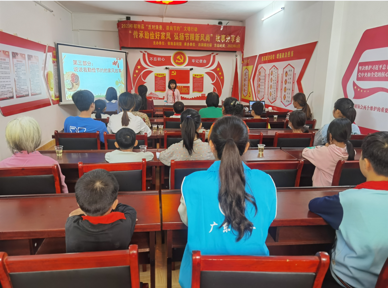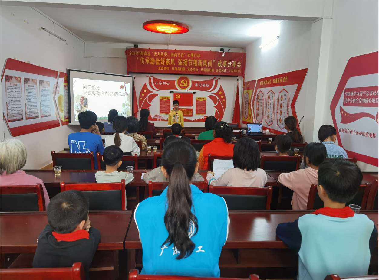 為大力弘揚中華民族勤儉節約的優秀傳統,大力宣傳節約光榮、浪費可恥的思想觀念;倡導孩子們從點滴做起、從我做起,讓勤儉節約成為社會文明新風尚,3月23日,郁南縣婦聯聯同歷洞鎮婦聯在歷洞村開展“傳承勤儉好家風 弘揚節糧新風尚”故事分享會,約40多人參加了此次活動。