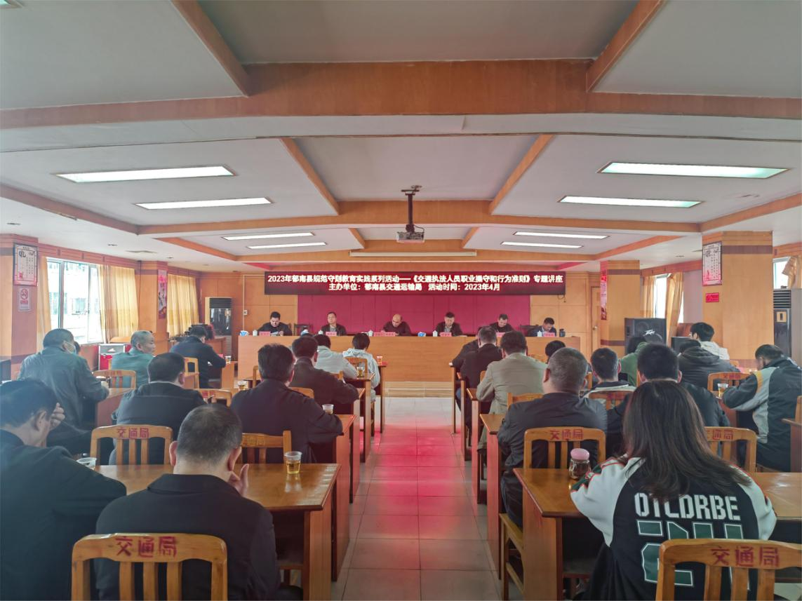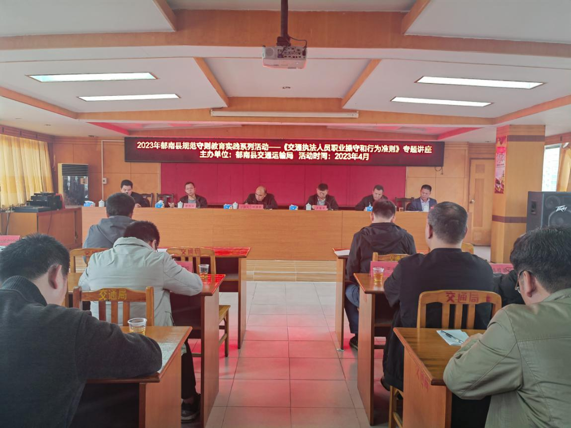 2023年4月1日,郁南縣交通運輸局組織召開規范守則教育實踐系列活動——《交通執法人員職業操守和行為準則》的專題講座。此次講座由交通運輸局黨組書記、局長葉澤華同志主講,局全體工作人員參加。