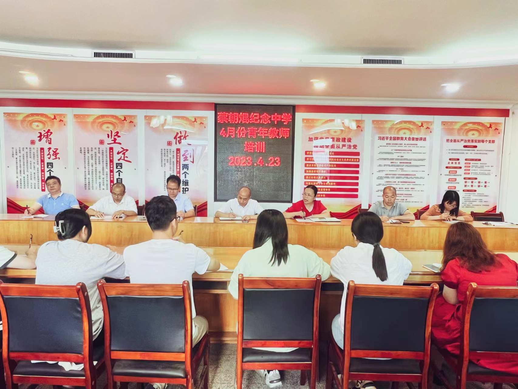 4月23日上午,蔡朝焜紀念中學4月份青年教師培訓會在學校黨建活動室召開。學校黨總支書記、校長彭燕飛,副校長陳演年,學校辦公室、教務處、教科處有關人員及17名新入職青年教師參加了本次培訓會。