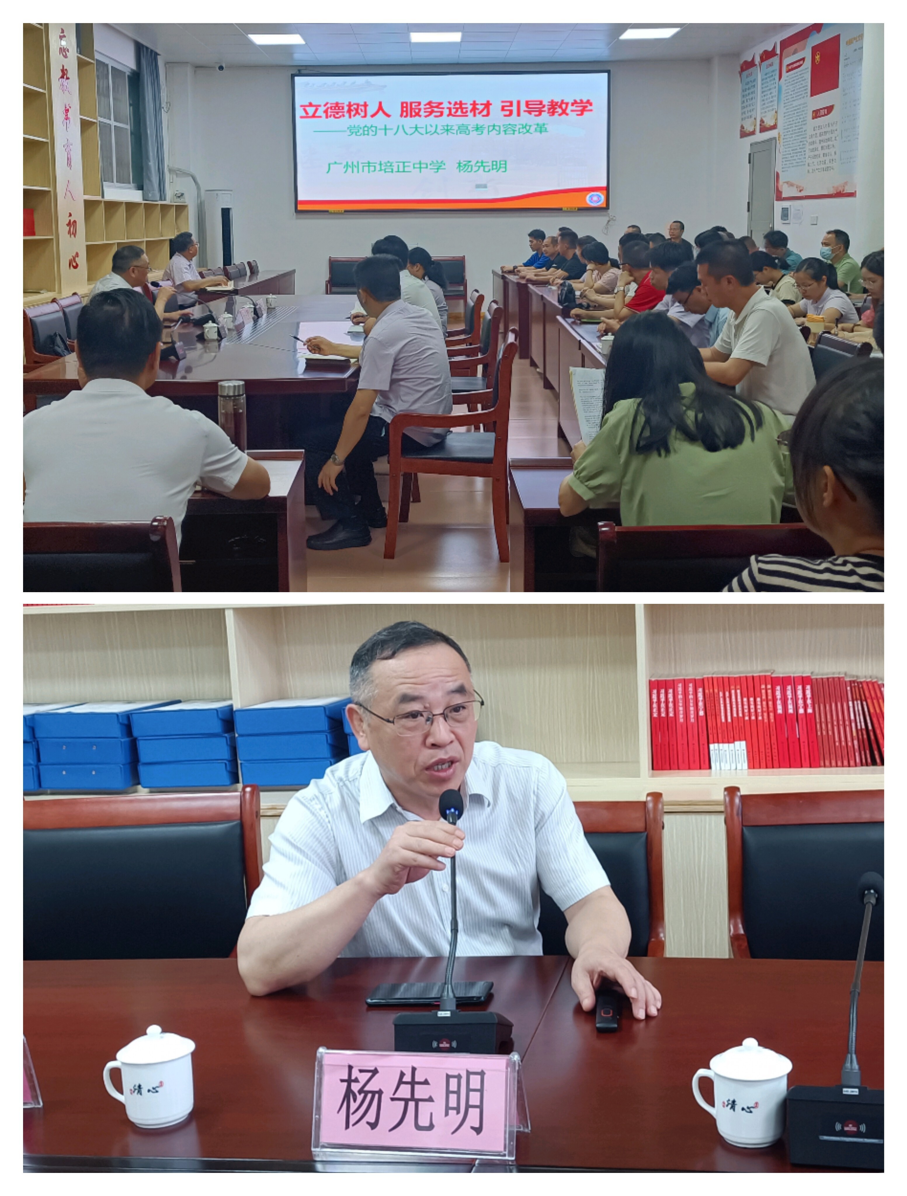 5月7日上午,郁南縣連灘中學特邀中學正高級教師、廣州市培正中學教學副校長楊先明蒞臨我校做專題講座,縣教育副局長凌瑯、云安中學校級領導、連灘中學教育集團各成員學校教學副校長、連灘中學全體九年級和高中教師參加。