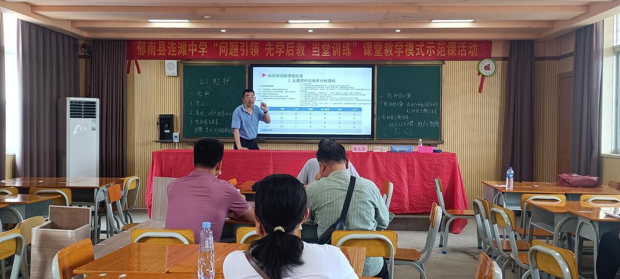 為改進課堂教學模式和教學方法,促進教師專業(yè)成長,充分發(fā)揮名師工作室的模范引領和輻射作用,5月18日,廣東省羅文成名教師工作室成員、廣東省許勇輝名教師工作室成員、廣東省黃強名工作室成員、廣東省潘潔蘭名教師工作室成員、佛山市許勇輝基礎教育領軍人才工作室及順德區(qū)許勇輝特級教師工作室聯合到郁南縣連灘中學開展“名師名課”送課下鄉(xiāng)研修活動。本次研修活動有七年級語文、數學、信息,八年級政治、物理、語文,高一語文、高中信息五個學科,分四個環(huán)節(jié)進行,有一百多教師參與。