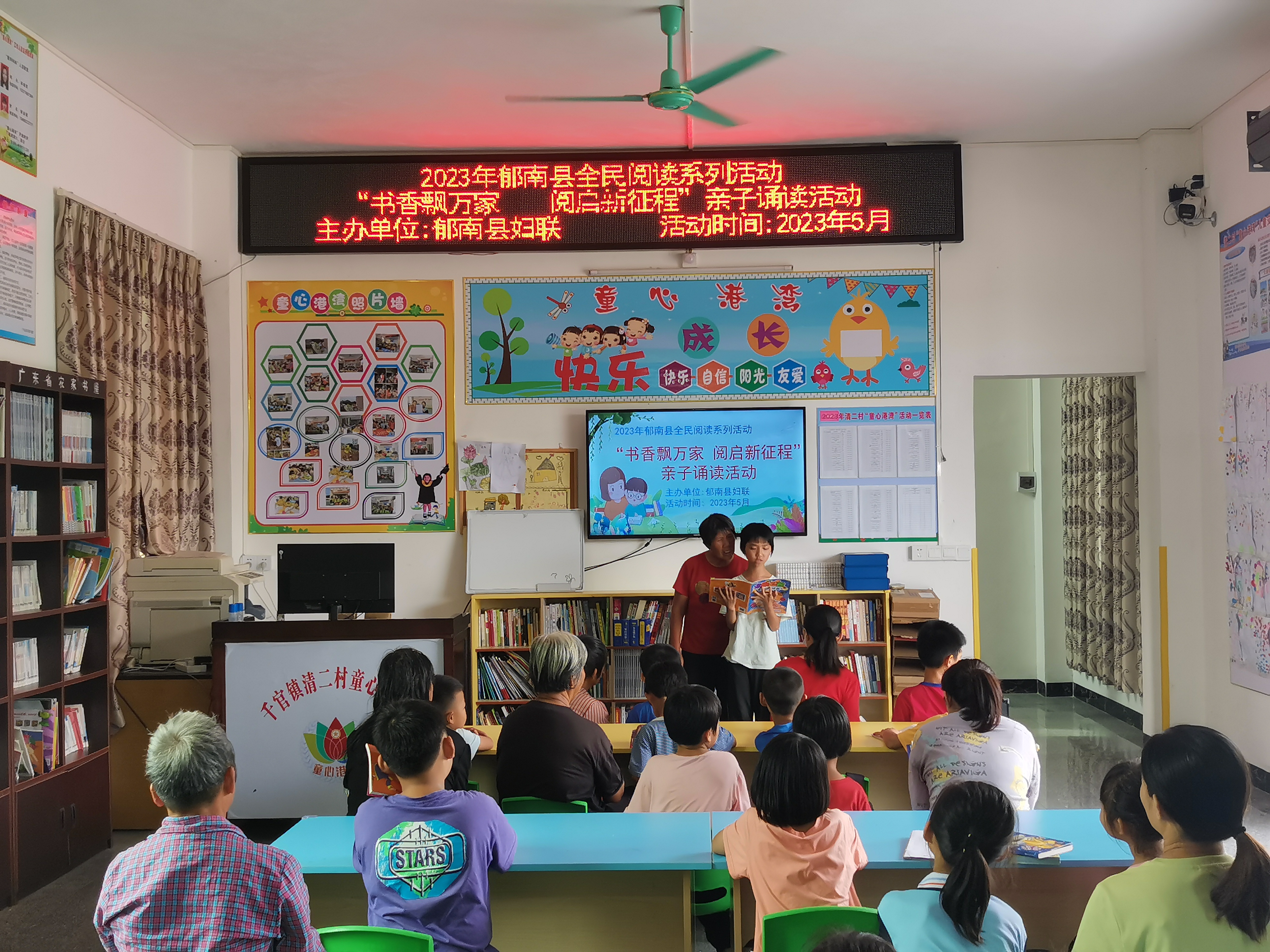 為深入學習宣傳貫徹黨的二十大精神,深化開展全民閱讀活動,呵護關愛未成年人健康成長,營造良好的閱讀氛圍,5月25日,郁南縣婦女聯合會聯合千官鎮婦聯在清二村童心港灣開展了“書香飄萬家 閱啟新征程”親子誦讀活動,共有15對親子家庭參加了活動。