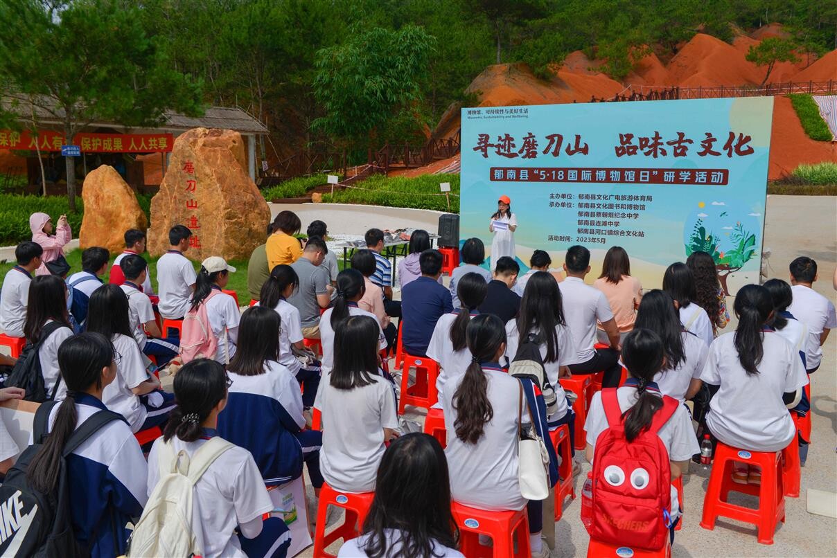 為進一步貫徹落實黨的二十大精神和習近平總書記關于文物工作的重要論述,以及堅持“保護第一,加強管理、挖掘價值、有效利用,讓文物活起來”的新時代文物工作方針,依托第47個“5·18”國際博物館日,為更好地踐行博物館日“博物館,可持續性與美好生活”的主題內容,展現文化遺產及其相關領域知識,提高中學生對文博知識的認知、多了解磨刀山遺址的相關考古知識,5月15日,由郁南縣文化廣電旅游體育局主辦,郁南縣文化圖書和博物館、郁南縣蔡朝焜紀念中學、郁南縣連灘中學、郁南縣河口鎮綜合文化站承辦的“尋跡磨刀山 品味古文化”研學活動在河口鎮磨刀山遺址舉行,百多名師生參加了本次活動,發放各類宣傳小冊子200多份。