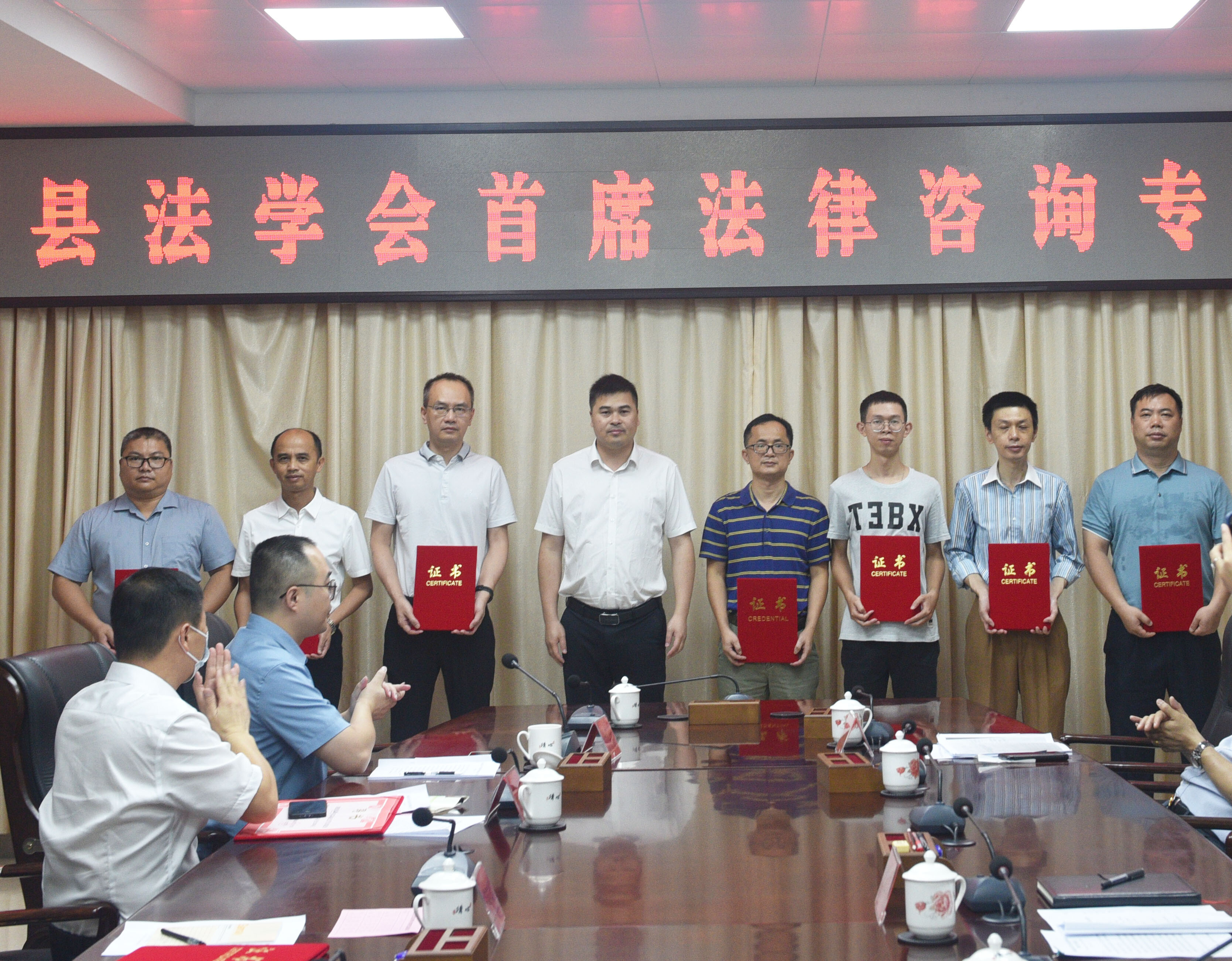 會議宣讀了《關于成立郁南縣首席法律咨詢專家委員會的通知》以及首席法律咨詢專家人員名單,審議了《郁南縣法學會首席法律咨詢專家管理辦法》,縣委副書記、政法委書記鄭輝亮現場為16名首席法律咨詢專家頒發了聘書并表示祝賀。