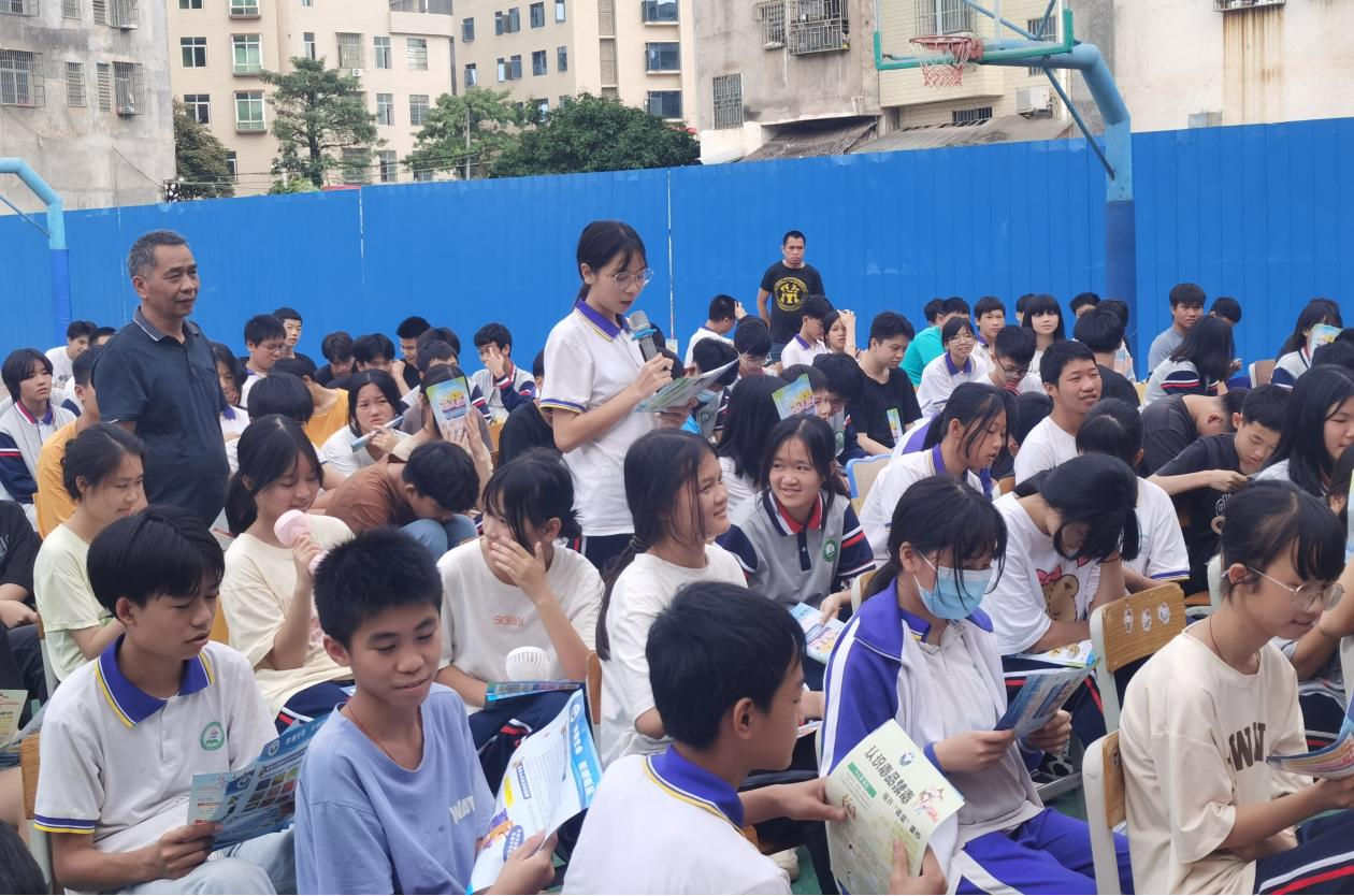 為進一步提高青少年識毒、防毒、拒毒的意識,引導青少年樹立“珍愛生命,遠離毒品”的正確觀念,營造無毒校園的禁毒宣傳氛圍。5月23日,郁南縣交通運輸局組織工作人員到郁南縣都城鎮初級中學開展“小手拉大手,護航成長不‘毒’行”為主題的宣講活動。
