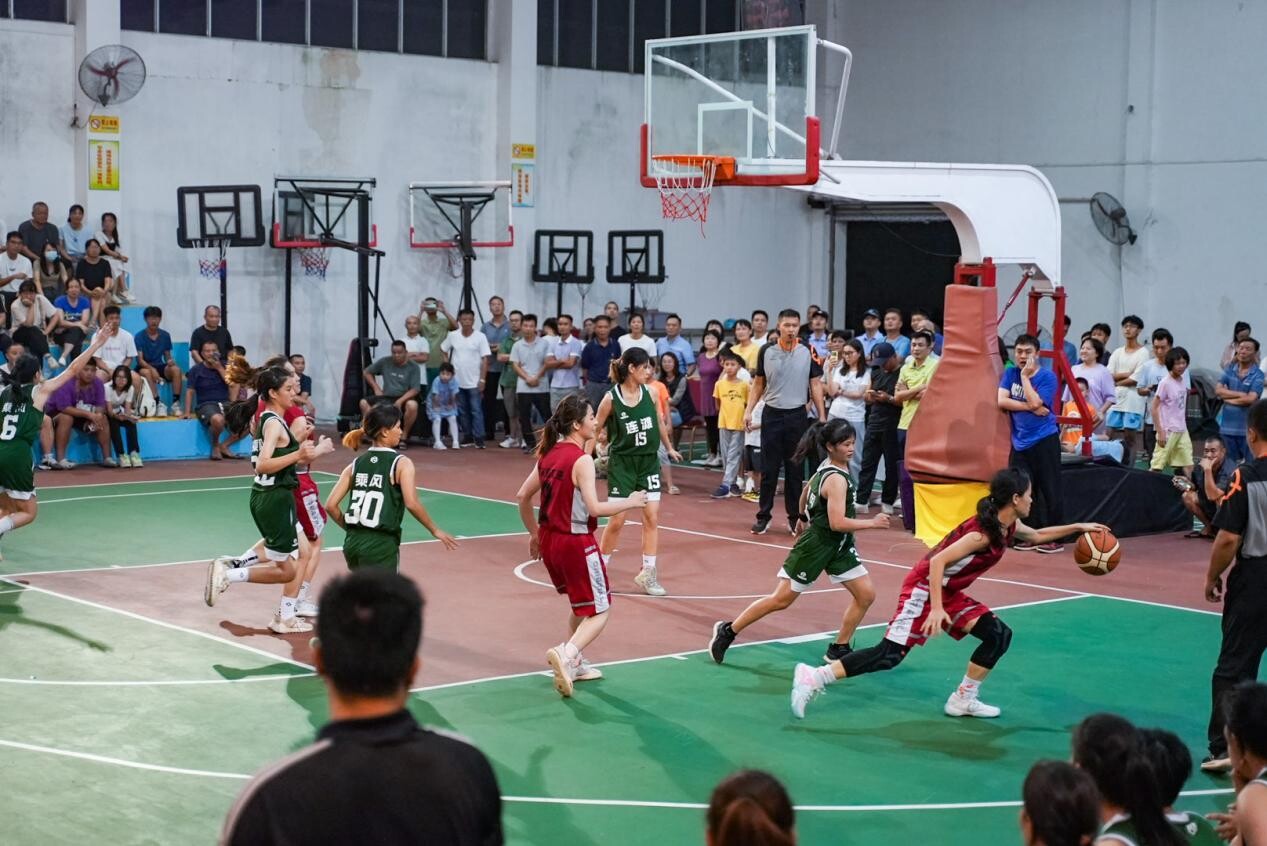當晚8點,郁南縣體育中心籃球館內喊聲震天,冠亞軍爭奪賽在南江口鎮人民政府隊和連灘鎮人民政府隊之間展開。場上球員各施所能,爭先上籃,展現出精湛的球技;場下觀眾振臂歡呼,為每一次進攻得分加油吶喊,聲浪一波接一波。最終,隨著裁判的終場哨響,連灘鎮人民政府隊以54:46的分數贏下比賽。