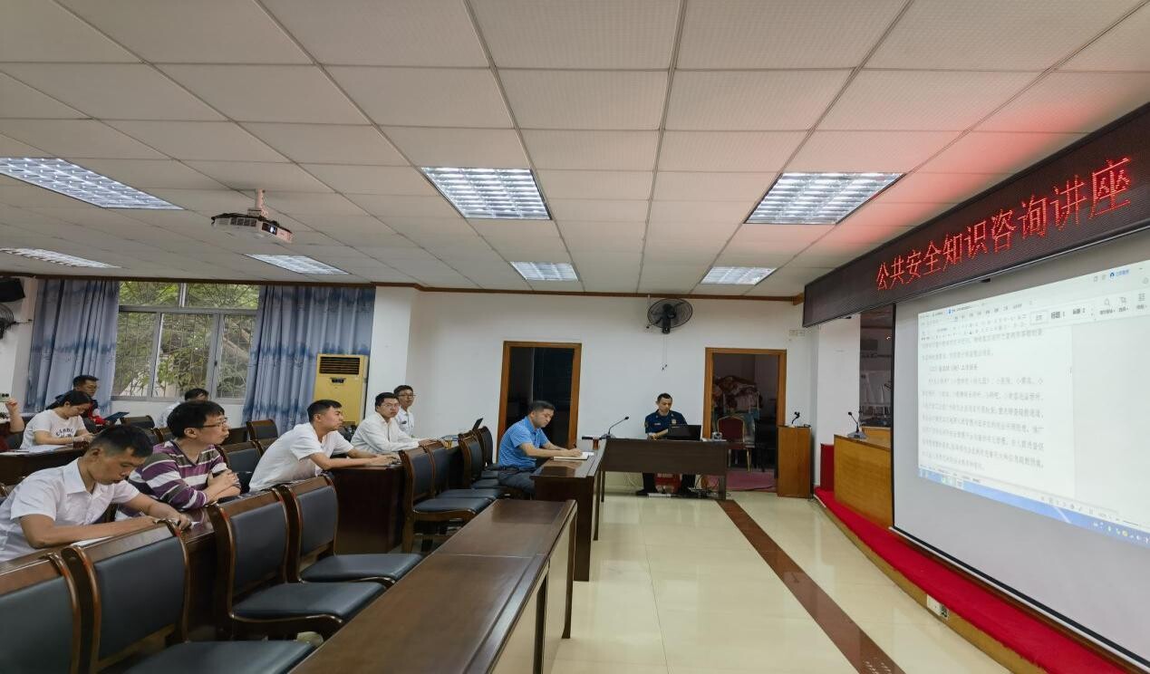 本次會本議由郁南縣住房和城鄉建設局副局長謝庚鳴主持,縣消防大隊張澤坪副大隊長作郁南縣燃氣安全專項餐飲企業場所整治專班工作部署,縣住建局消防股陶柑權結合消防股法律法規普法和相關職能發言,粵消安梁老師作公共安全(消防安全)知識咨詢講座。