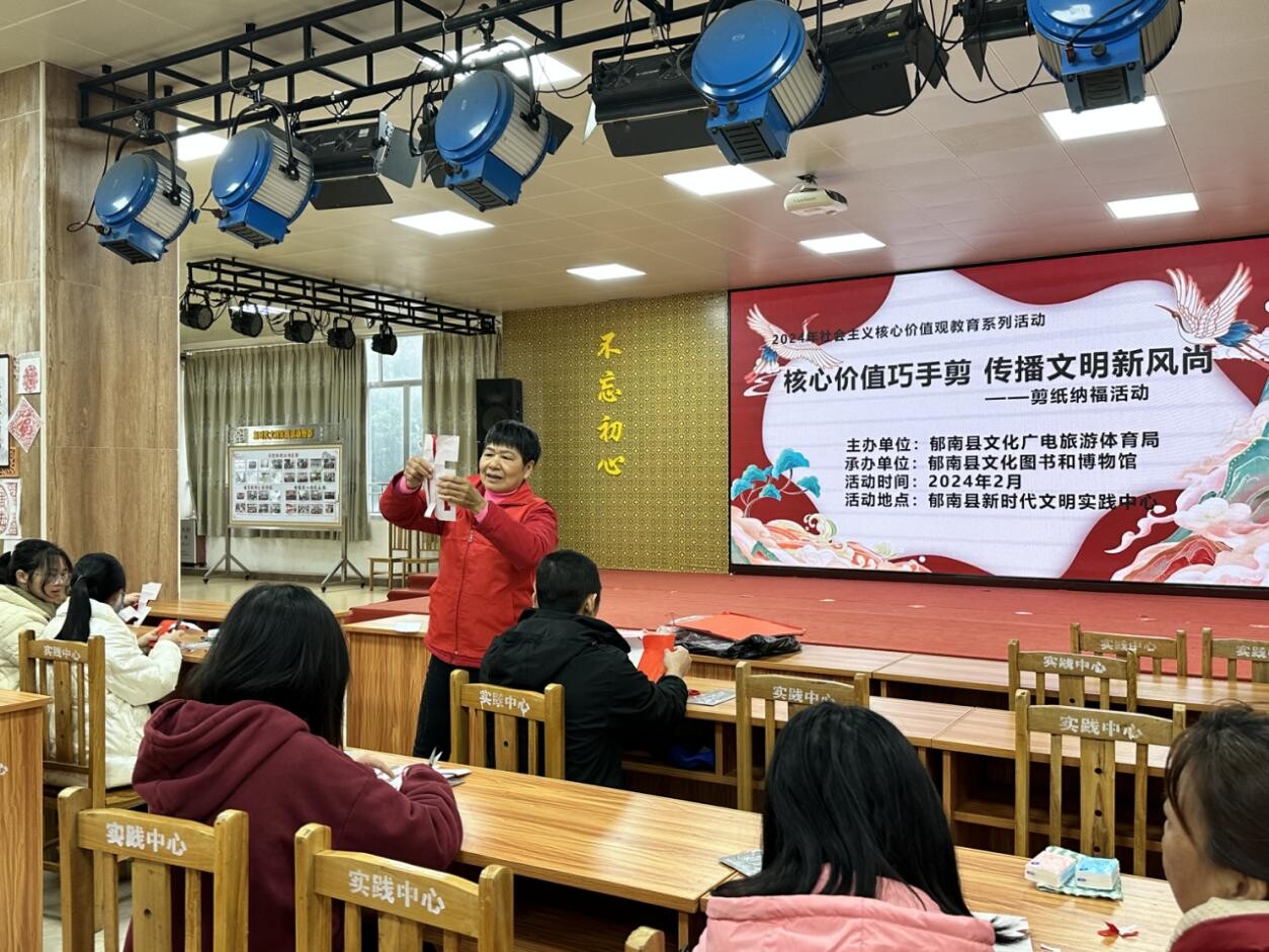 在新春佳節來臨之際,為弘揚中華優秀傳統歷史文化,增強社會主義核心價值觀,豐富群眾的業余生活,提升人民群眾的獲得感、幸福感,2月6日上午,由郁南縣文化廣電旅游體育局主辦,郁南縣文化圖書和博物館承辦,在郁南縣新時代文明實踐中心開展“核心價值巧手剪·傳播文明新風尚”剪紙納福活動,為群眾營造喜慶祥和的節日氣氛。