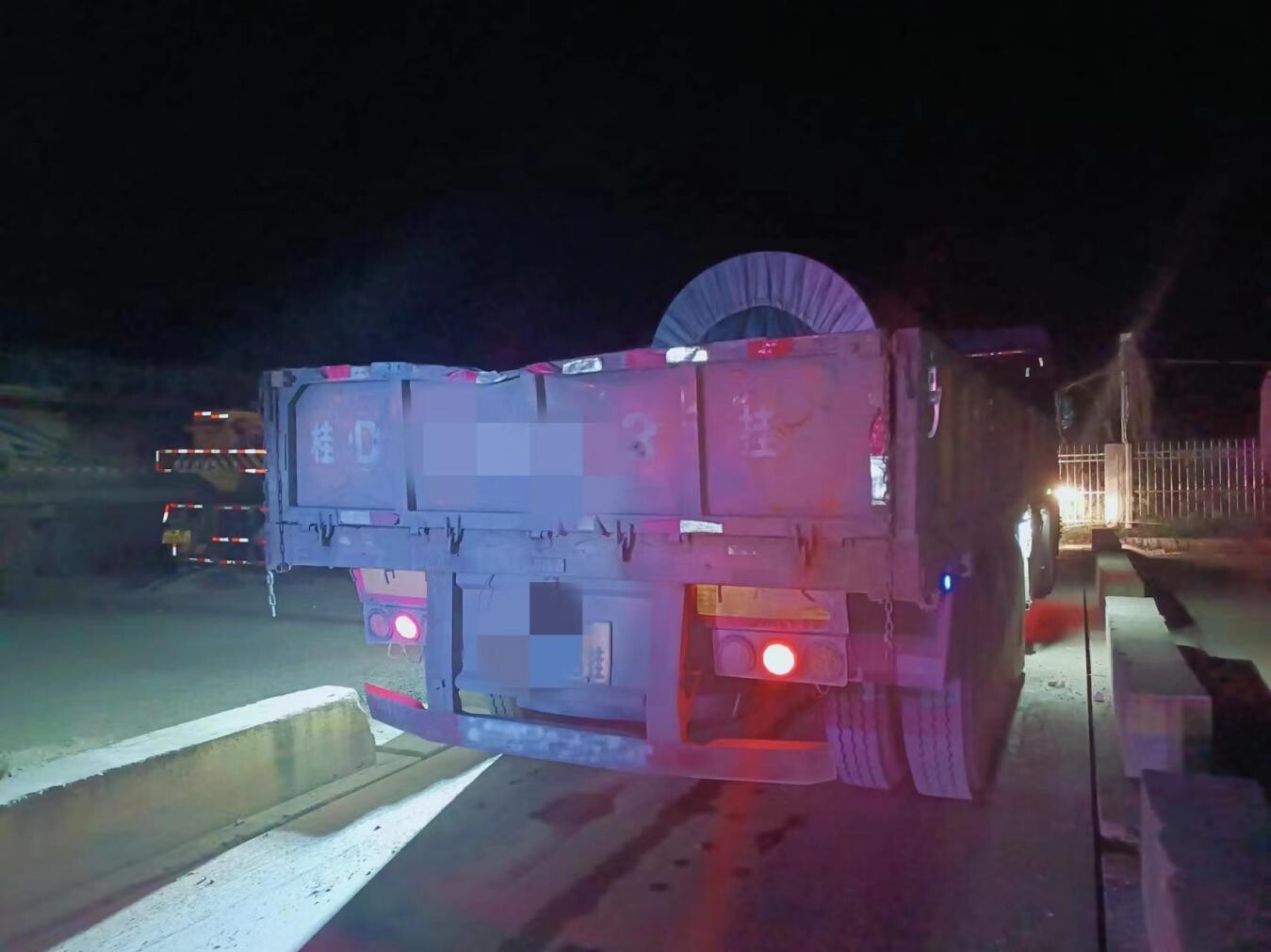 2024年4月17日凌晨,郁南縣交通運輸局聯(lián)合云浮市交警支隊對S368線平臺路段存在利用遮擋號牌、強光燈、逆行、“開火車”等手段逃避非現(xiàn)場治超檢測的道路貨運車輛開展整治行動。行動中,我局“線上”工作人員運用非現(xiàn)場監(jiān)控系統(tǒng)實時向公安交警執(zhí)法人員提供涉嫌超限超載車輛的實時數(shù)據(jù),“線下”執(zhí)法人員立即對掌握的信息研判分析,通過嚴密布控,實施精準打擊。本次行動成功查獲6輛超限運輸車輛,其中超限率最高的涉事車輛車貨總重達到87噸。