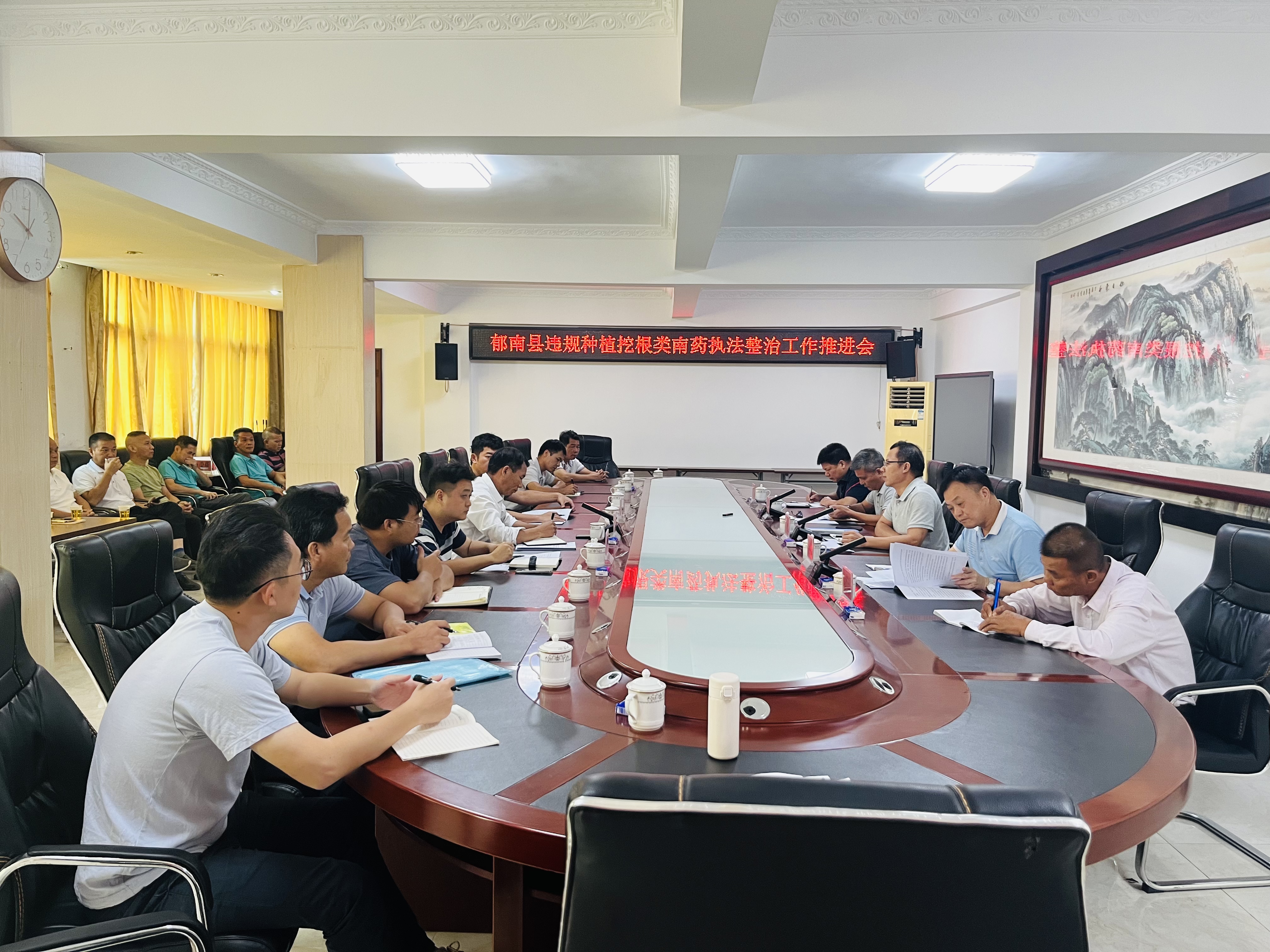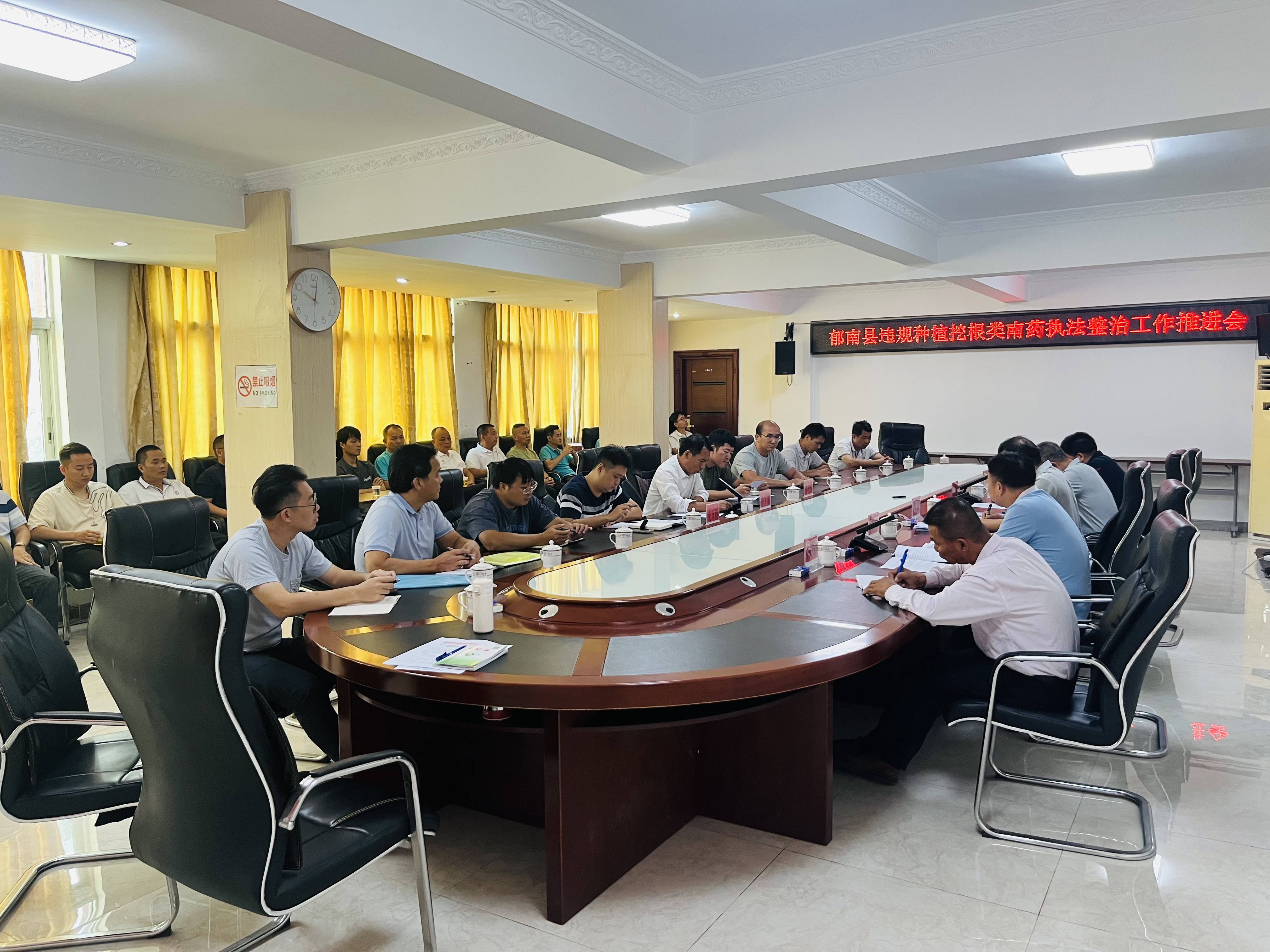 為全力推進違規種植挖根類南藥執法整治工作,10月12日上午,郁南縣整治違規種植挖根類南藥工作領導小組組織千官、大方、歷洞鎮分管林業工作的鎮領導、林業工作站負責人、縣公安局、縣水務局、縣應急管理局、縣林業局分管負責人和縣林業局林業執法隊伍共約30人在千官鎮人民政府二樓會議室召開郁南縣違規種植挖根類南藥執法整治工作推進會。