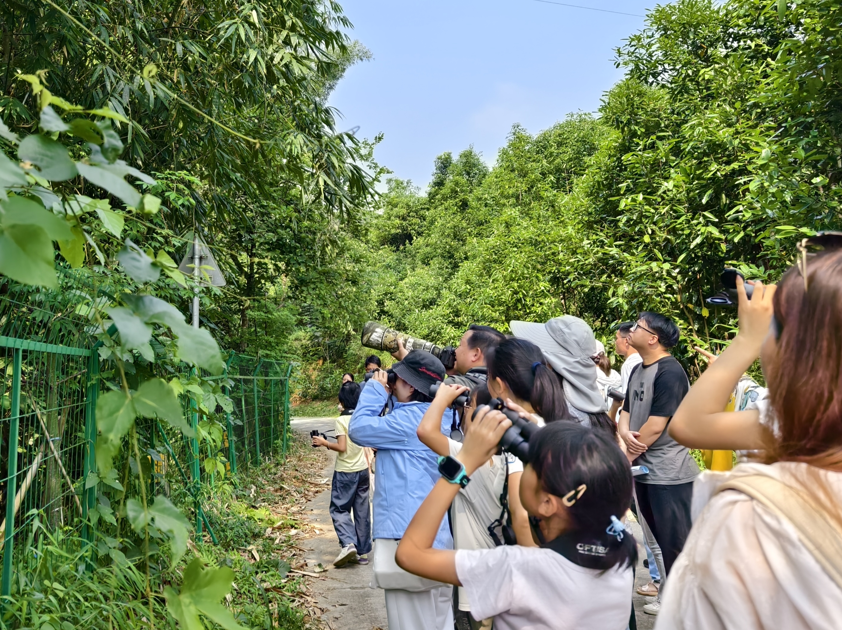 活動的重頭戲無疑是戶外觀察環節。在專業觀鳥老師的指導下,參與者們掌握了望遠鏡的使用技巧,并學習了如何在野外尋找和觀察鳥類。隨著隊伍緩緩步入濕地公園的觀鳥路線,一幅幅生動的自然畫卷逐漸展開:小??在水庫中悠閑游弋,斑文鳥在蘆葦叢中跳躍嬉戲,紅耳鵯則靜靜地站在枝頭,仿佛在聆聽大地的聲音。每一次發現都讓參與者們興奮不已,他們小心翼翼地記錄下所見所聞,生怕錯過任何一個細節。特別值得一提的是,當大家通過望遠鏡捕捉到大山雀捕食昆蟲的瞬間時,孩子們對生態食物鏈的復雜性有了更直觀的認識,紛紛表示要更加珍惜和保護自然界的每一個生命。