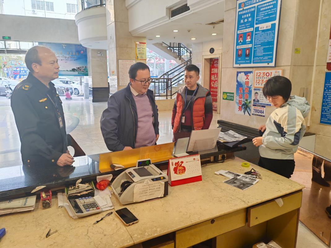 為維護良好的假日市場環境,促進文旅體市場消費,保障人民群眾度過歡樂祥和、平穩有序的春節假期,1月21日,云浮市文廣旅體局辦公室主任郭家樂同志帶領市文物保護科、執法科等相關科室負責同志,聯合郁南縣文廣旅體局開展2025年春節前文化廣電旅游體育行業市場綜合檢查。
