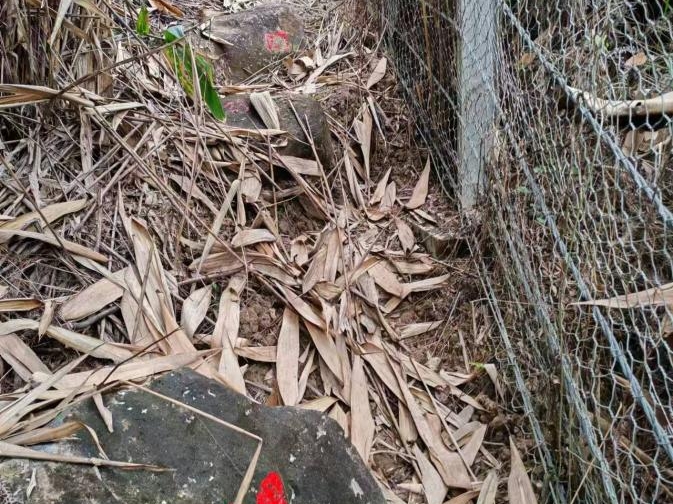 經(jīng)實(shí)地勘察,南廣線369.846-370.210段為低矮丘陵地段,右側(cè)路塹柵欄外山坡高約50米,坡率介于1:2至1:1.5之間。該段存在約80米山體裸露,山體內(nèi)夾雜巨石,開荒種樹導(dǎo)致半山腰修建的簡(jiǎn)易便道影響排水,可能導(dǎo)致山體溜坍的問題。