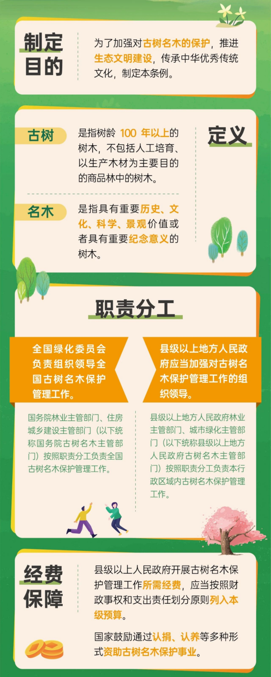 3月15日起,《古樹名木保護(hù)條例》施行。這是我國首次以行政法規(guī)的形式明確了開展古樹名木保護(hù)管理工作應(yīng)遵守的法律規(guī)定,填補(bǔ)了我國古樹名木保護(hù)領(lǐng)域的法規(guī)空白,為我國古樹名木保護(hù)事業(yè)高質(zhì)量發(fā)展提供了堅(jiān)實(shí)的法治保障。