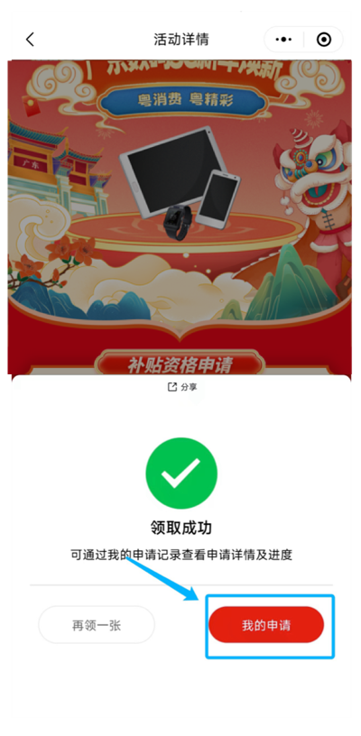 步驟1:打開“我的申請(qǐng)”可查看領(lǐng)取成功的補(bǔ)貼資格