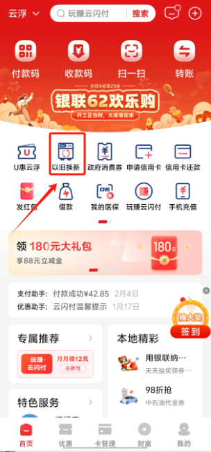 步驟1:打開云閃付APP以舊換新專區(qū)