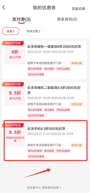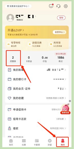 步驟4:在“我的”優(yōu)惠券可快速打開補(bǔ)貼資格