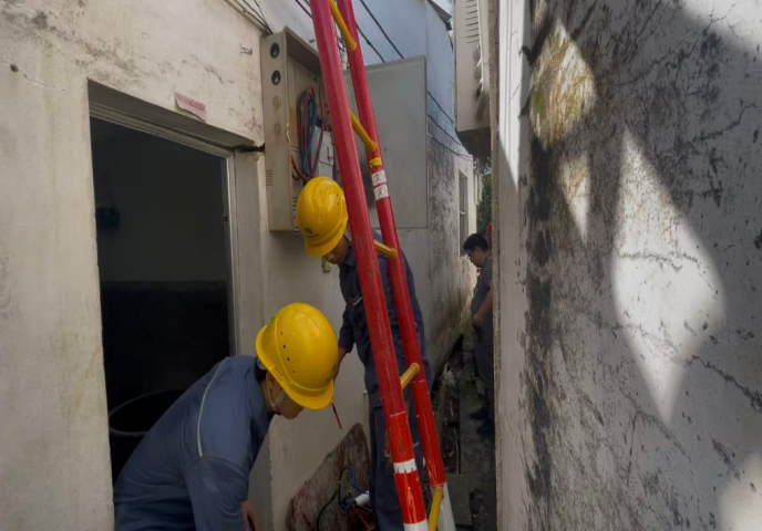 執法現場,聯合執法組依法拆除電表并落實全面斷電措施,責令該企業自行拆除生產設備,堅決取締縣內無資質攪拌站。