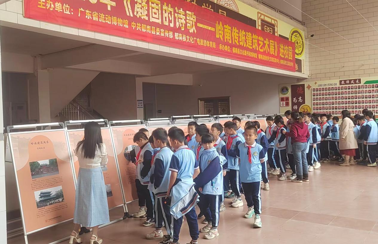 近日,由廣東省流動博物館、中共郁南縣委宣傳部郁南縣文化廣電旅游體育局主辦,郁南縣文化圖書和博物館、郁南縣新時代文明實踐中心、郁南縣西江實驗學校共同承辦的《凝固的詩歌——嶺南傳統建筑藝術圖片展》《探尋“最早廣東人”——磨刀山遺址圖片展》走進校園。