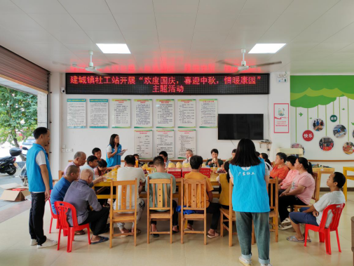 紅旗漫卷迎國慶,皓月當空慶中秋。當舉國歡慶的家國情懷遇上闔家團圓的傳統溫情,建城鎮社區康園中心內格外熱鬧 ,為讓殘障朋友們在雙節之際感受家的溫暖與社會的關懷,建城鎮社工站攜手殘聯精心策劃 “歡度國慶?喜迎中秋?情暖康園” 主題活動,用貼心服務與趣味互動,為康園注入濃濃的節日氛圍。
